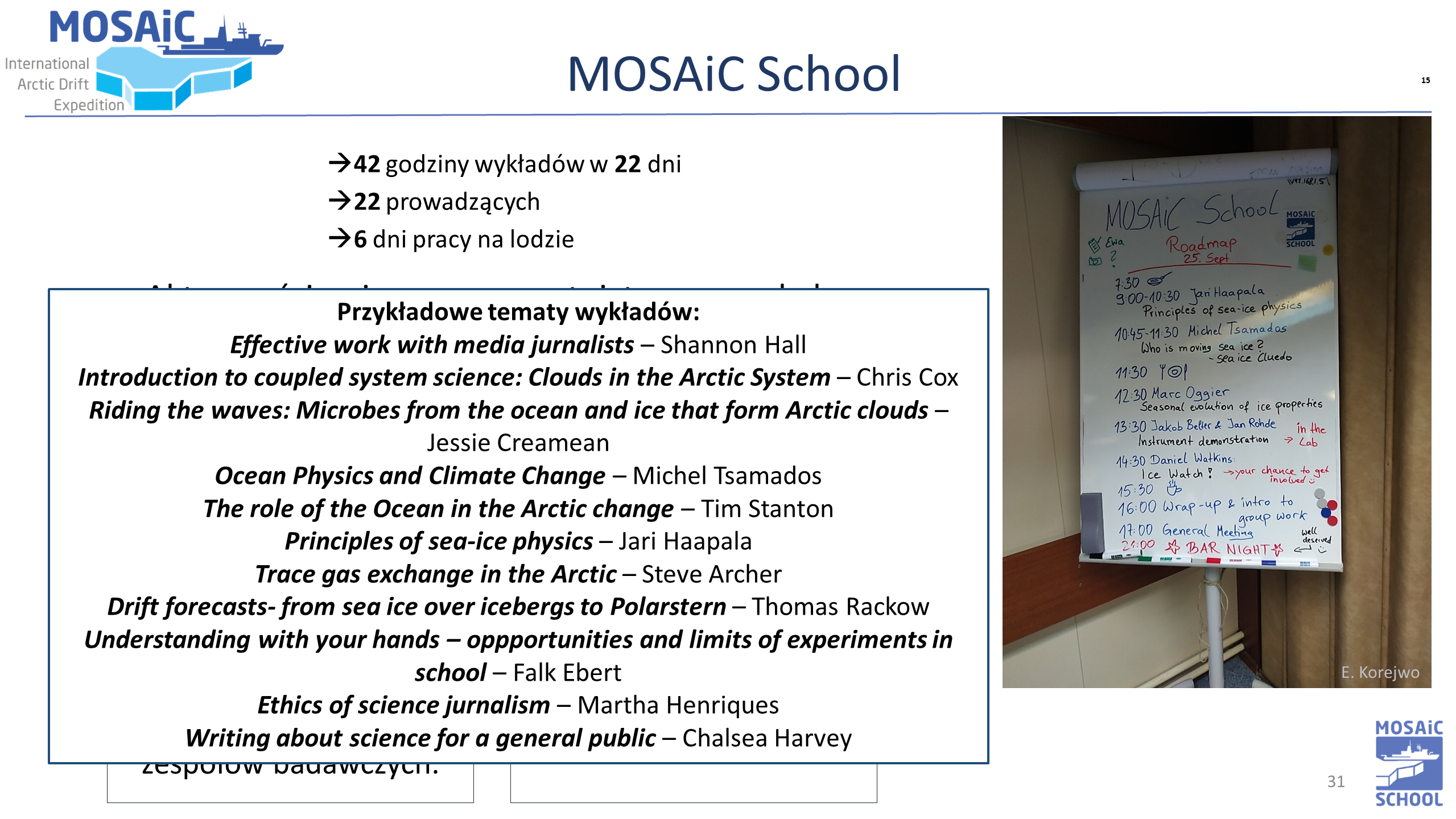 Ewa Korejwo „Wyprawa badawcza projektu Mosaic (Wielodyscyplinarne Obserwatorium Dryfujące do Badania Klimatu Arktyki).”